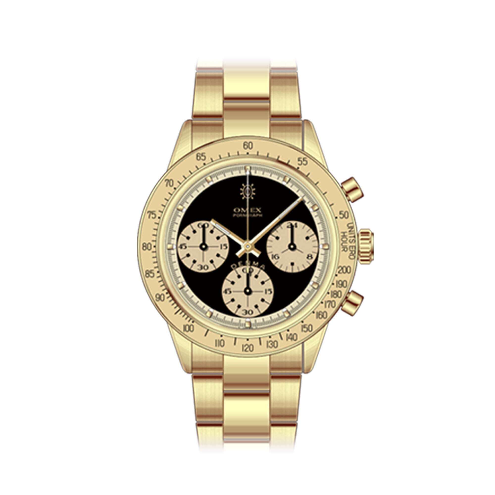 【OMEX-DENMA】CHRONOGRAPH Vintage Model GOLD×BLACK【Japan movement (SEIKO-VK63)】