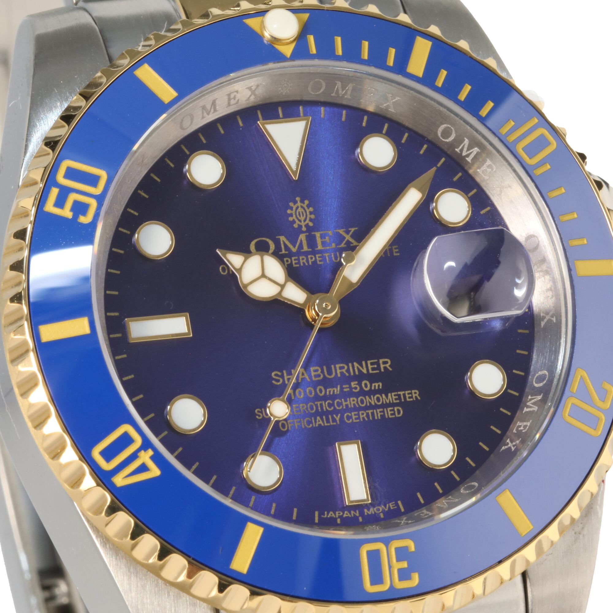 【OMEX・SHABURINER 】AUTOMATIC DATE WATCH GOLD×BLUE
