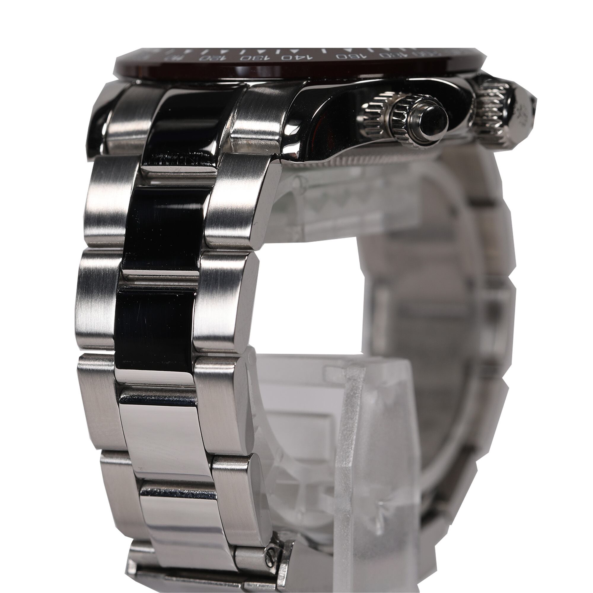 Most of the highest quality chronograph models have the hands stopped at the 12 o'clock position, and a watch with the hands stopped at the 12 o'clock position is a sign of the highest quality.
